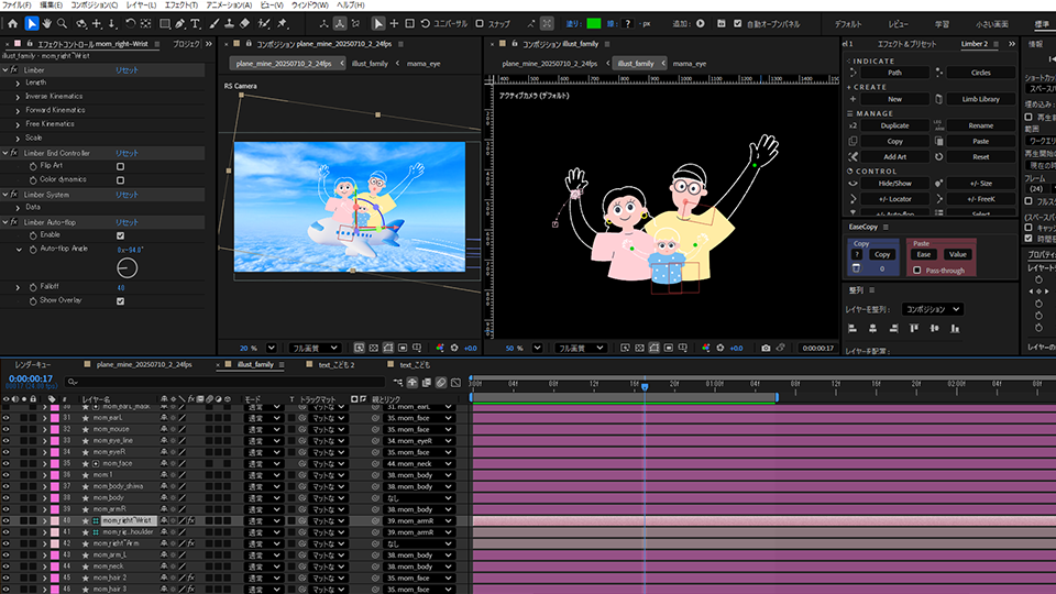 キャラクターアニメーションにはLimber2を使っています。とても便利でお気に入りのプラグインです。
